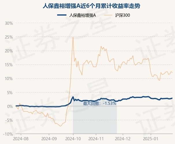 本站消息,1月27日,人保鑫裕增强A最新单位净值为1.1089元,累计净值为1.1289元,较前一交易日上涨0.12%。历史数据显示该基金近1个月下跌0.48%,近3个月上涨0.95%,近6个月上涨2.82%,近1年上涨4.47%。该基金近6个月的累计收益率走势如下图: